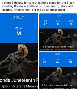 I Have Three Tickets For The Black Cowboy Rodeo In Portland, Oregon On Juneteenth$100Seattle, WA