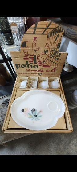 Vintage 1950s Atomic Flower Patio Snack Set by Federal Glass Co Mid-Century in Original Box $35Tempe, AZ