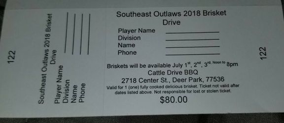 Southeast Outlaws 2018 Brisket Drive$80La Porte, TX