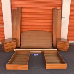 Vintage Danish Mid Century Modern Teak Queen Headboard and Nightstands w/ Upper Storage $895Bellevue, WA