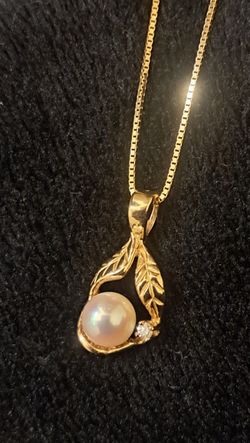 Vintage Edward Sultan Na Hoku Pearl & Diamond Necklace Pendant, Swirling Leaves And 14kt Gold Aurafin Necklace $600Grand Rapids, MI