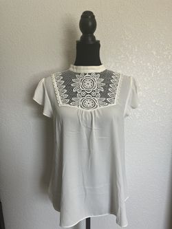 Express Small Ivory Flutter Cap Sleeve Crochet Lace Yoke Blouse shirt top S$12El Paso, TX