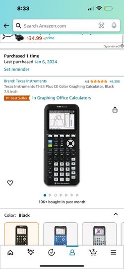 Texas Instruments TI-84 Plus CE Color Graphing Calculator, Black 7.5 Inch$100San Diego, CA