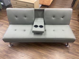 New Leather Reclining Futon with Cupholders and Pillows, Grey $150Columbia, SC