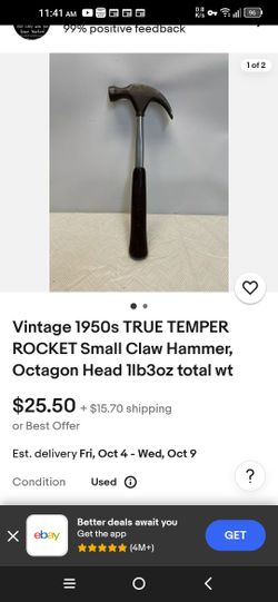 Vintage 1950s True Temper Rocket Claw Hammer $20Bakersfield, CA