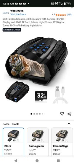 Night Vision Goggles, 4K Binoculars With Camera. 3.5 Inch HD Display And 32GB Memory Card. 9 Gear Night Vision, 10X Digital Zoom, 4000 mAh Battery $70Bakersfield, CA