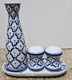 Asian Thai Print Salt & Pepper Shackers And Soy Sauce Bottle With Tray$25Las Vegas, NV