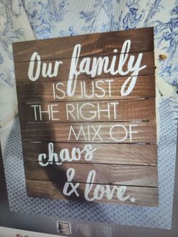 Family: Perfect Mix of Love & Chaos" wood sign.