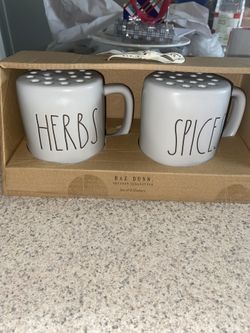 New Rae Dunn HERBS and SPICES Gray Shaker Set By Magenta Artisan Brown letters$55Galloway, OH