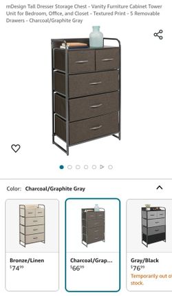 Tall Dresser Storage Chest - Vanity Furniture Cabinet Tower Unit for Bedroom, Office, and Closet - Textured Print - 5 Removable Drawers - Charcoal/Gra$60Piscataway, NJ