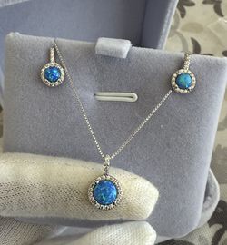 Solid Sterling Silver 925 Blue Opal Earrings And Pendant Set$55Fremont, CA