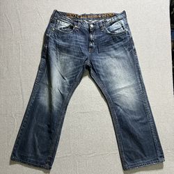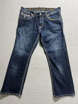 Rock Revival Men's Dark Wash Benson Straight Jeans Embellished Pockets Size 38$90Phoenix, AZ