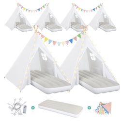 6 Pack Sleepovers Teepee Tents for Kids Bulk with Mattress Sheet, Star Lights, Natural Cotton,$160Monroe, NC