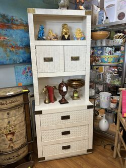 Vintage mid-century Lea The Bedroom People Whit Wicker Dresser with hutch$500Boca Raton, FL