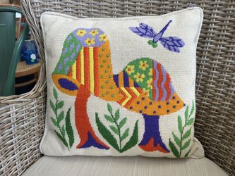 Vintage mid-century mushrooms dragonfly needlepoint pillow$50Boca Raton, FL