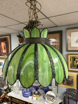 Vintage 1930's Green Lotus Swag Stained glass lamp Chandelier $500Boca Raton, FL