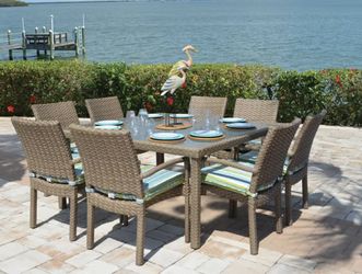 Kokomo sugar sand Outdoor Rectangular Dining Table and 4 stackable chairs with custom cushions New$800Boca Raton, FL