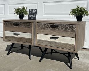 (2) Gorgeous 2-Drawer Rustic Wood & Metal Night Stands$280Corona, CA
