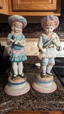 Set of Two Antique Large Polychrome Bisque Figures/Statues Boy & Girl German$55Liberty, SC