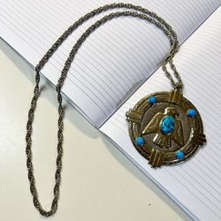 Nickle Silver Bell Vintage Western Navajo Thunderbird Turquoise Pendant Necklace$29Covington, WA