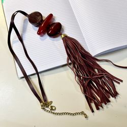 Chico’s Women’s Burgundy Brown Leather Cord Beaded Tassel Statement Necklace $25Covington, WA