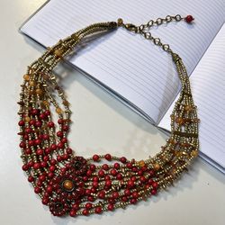 Chico’s Women’s Statement Multi Color Red Gold Amber Tone Layer Beaded Necklace$15Covington, WA