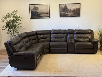 Costco top grain charcoal gray leather reclining sectional Couch Delivery Available $850Tacoma, WA