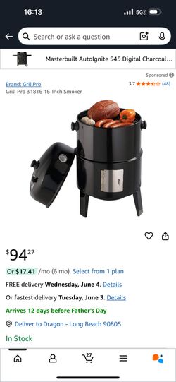 Grill Pro 31816 16-Inch Smoker$65Long Beach, CA