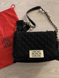 CH Carolina Herrera Black Tweed Pearl Shoulder Bag Purse $790Wesley Chapel, FL