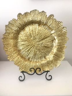 Gold Glass Charger Plates with whimsical edging. Please read description.$8Yucaipa, CA