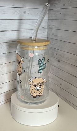 New Highland Cow Glass Tumbler With Lid And Straw $14Spring Hill, FL