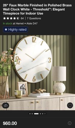 26" Faux Marble Finished in Polished Brass Wall Clock White - Threshold™$45Hemet, CA