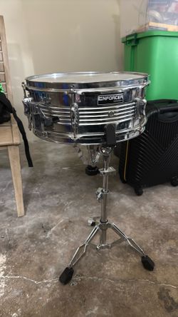 Enforcer Snare Drum with PDP stand steel chrome set marching band drummer school student$100Issaquah, WA