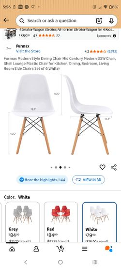 Furmax Modern Style Dining Chair Mid Century Modern DSW Chair, Shell Lounge Plastic Chair for Kitchen, Dining, Bedroom, Living Room Side Chairs Set of$65San Antonio, TX
