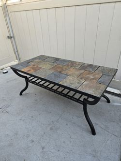 Coffee Table Slate Tile with Open Storage Shelves Living Room