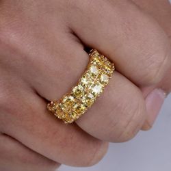 14K Gold over S925 Sterling Silver Double-Row Inlaid Moissanite Ring, $75Chicago, IL