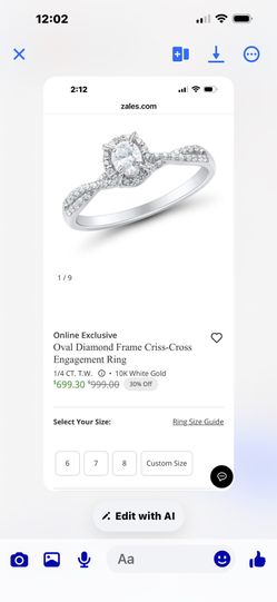 Zales 14k White Gold Natural Diamond Ring$400Mercer Island, WA