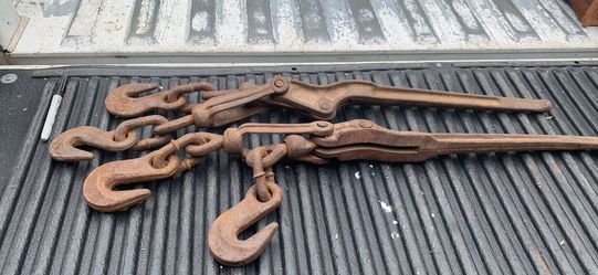 Two LEBUS lever-type load binders, also known as "boomers," used for tightening heavy-duty chains to secure loads on trailers or trucks.$50Tucson, AZ