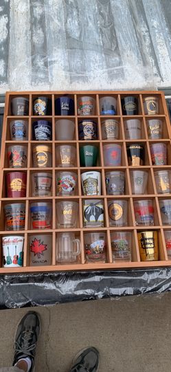 42 Different Shot Glasses with wooden wall hanger. Some are 1950’s #2$60Tucson, AZ