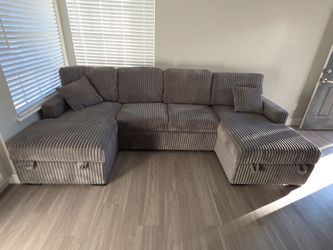 Big Grey Color Corduroy Sectional With Pullout Bed Wireless Charger Cup Holder $1,399Las Vegas, NV