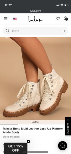 Rainier Bone Multi Leather Lace-Up Platform Ankle Boots Steve Madden$100Houston, TX