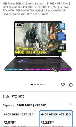 MSI GE68HX VG - I9 / 1TB SSD / 32GB RAM / Nvidia 4070 $1,000Seattle, WA