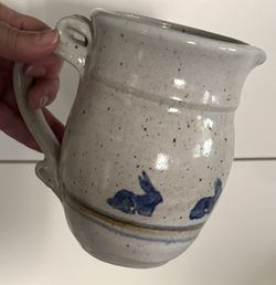 Sm Vintage Handmade Stoneware Pitcher Bunnies Rabbits Speckled Glazed Pottery Cottagecore Farmhouse$39Gilbert, AZ