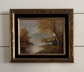 Vintage 8 x 10 Acrylic On Board Landscape Painting Signed Cabin Cottage River Pond Lake Trees Gold Frame$58Gilbert, AZ