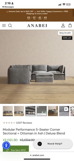 Anabei Modular Performance 5-Seater Corner Sectional + Ottoman in Ash | Deluxe Blend $1,200San Diego, CA