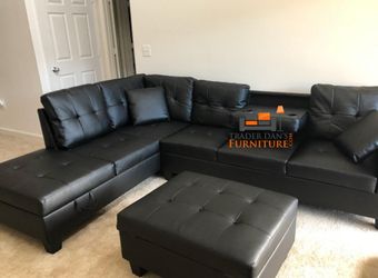 Brand New Black Leather Sectional Sofa w/Storage Chaise +Ottoman (New In Box) $995Wheaton-glenmont, MD
