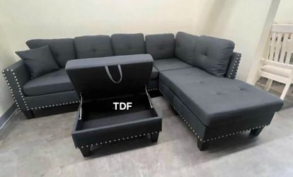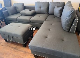 Brand New Charcoal Linen Sectional Sofa w/Storage Ottoman (New In Box) $680Wheaton-glenmont, MD