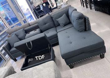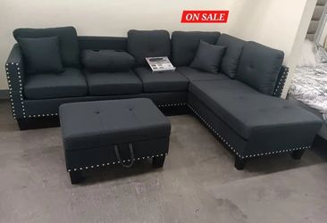 Brand New Charcoal Linen Sectional Sofa +Storage Ottoman (New In Box) $699Falls Church, VA