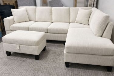 Brand New Ivory Corduroy Sectional Sofa +Storage Ottoman (New In Box) $750Wheaton-glenmont, MD