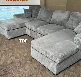 Brand New Grey Corduroy Sectional Sofa w/Double Chaise (4 Color Options) $850Arlington, VA